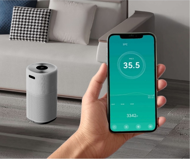 Індикатор якості повітря (Відмінна «Синій» / Помірна «Жовтий» / Середня „Помаранчевий“ / Погана «Червоний»). Також присутній повноцінний лазерний індикатор якості повітря, який показує кількість частинок PV2.5 в повітрі.